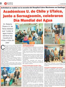Celebramos el Día Mundial del Agua 2026 con los niños y niñas de la Escuelita del Hospital Calvo Mackenna en Santiago, dos universidades y una institución del Estado, recordando el rol que nos cabe de educar y transferir conocimientos y técnicas a quienes nos sucederán en la gestión del agua en Chile.